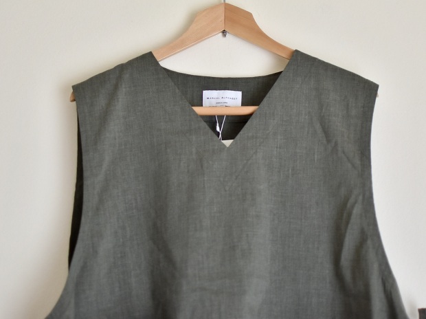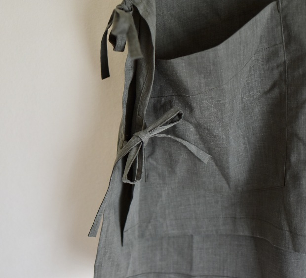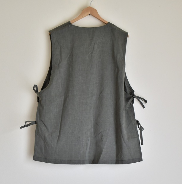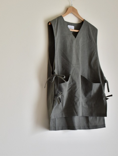 軍物のサージカルガウンからヒントを得た、脇を紐で結ぶ変形型のデザインで、シンプルになりがちな真夏のコーディネイトの差しアイテムとして活躍してくれます