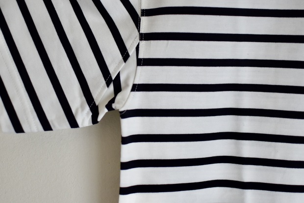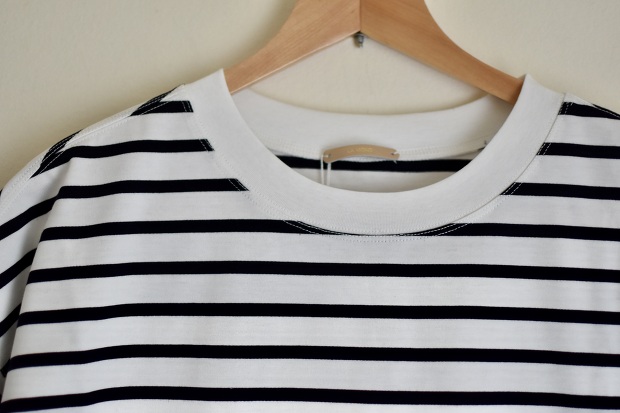 希少でしなやかでとろみのある超長綿スビンコットンとなめらかな超長緬ペールコットンを太番手で編み立てたボーダーTシャツ。