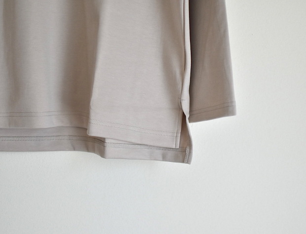 胸の切替えがほど良くデザインのアクセントとなっており、ストレッチ性の高さと軽い素材感が着心地よく、鮮やかな色味のトーンがアウターの中に着用しても映えるため、インナーとしてもおすすめの1着です。