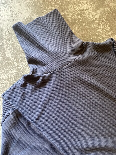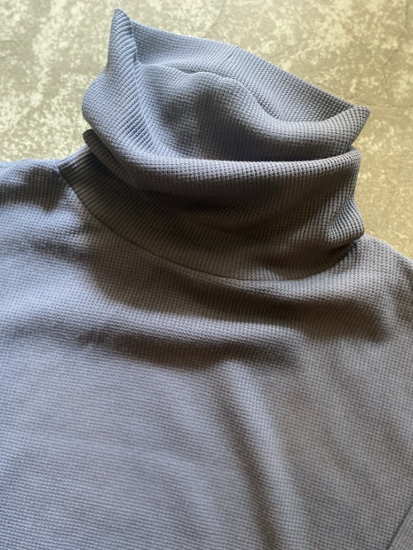 コットンワッフル素材のボトルネックプルオーバータイプです。