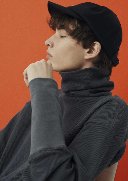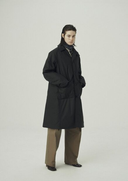 ゆったりとした首回りから高く伸びたネックはクシュっと首元でたまり他にない印象を与えてくれます。また、袖先に長く取り付けられたリブは少したくし上げた時のシルエットの演出にも配慮されています。