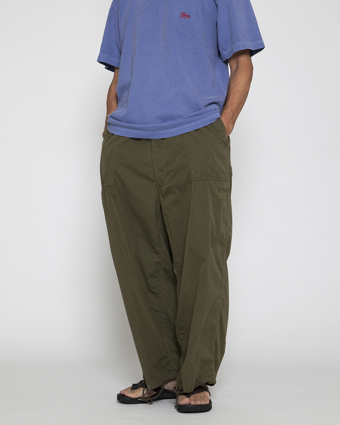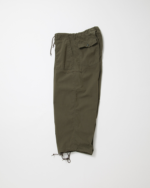 このアイテムは、ユーティリティトラウザーズ(通称ベーカーパンツ)をオーバーパンツのシルエットの中に落とし込んだ、シンプルなイージーパンツです。