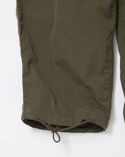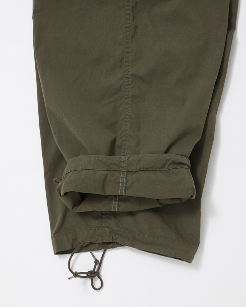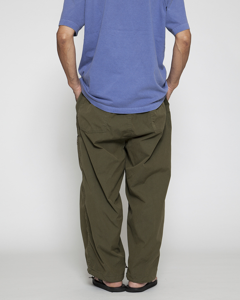 ウエストはドローコードで縛るイージーパンツ仕様で、オーバーパンツ特有の極太シルエットがとてもリラックスできる穿き心地です。