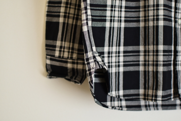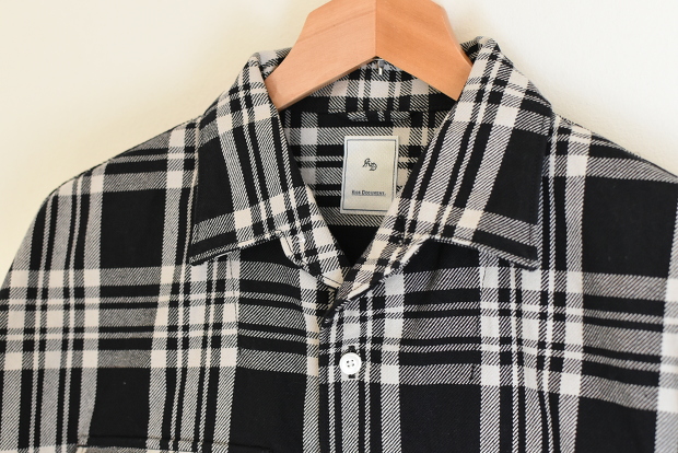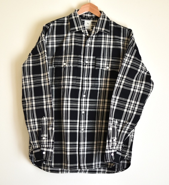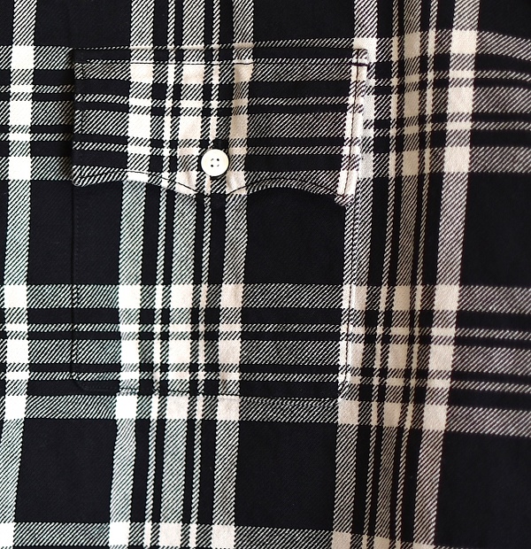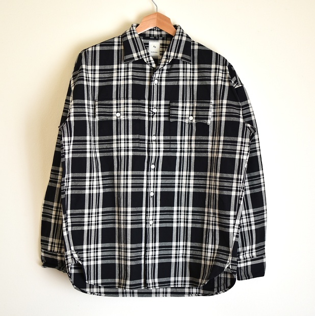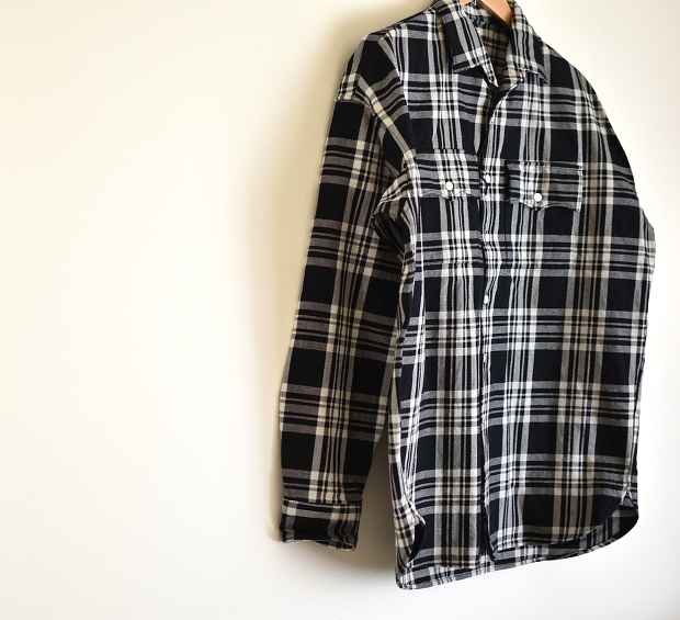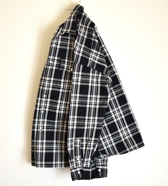 肉厚のコットンチェックシャツです。アウター感覚で着こなせるルーズシルエットでウェスタンシャツに見られるダブルポケットを装飾しています。丸みのあるオープンカラーも特徴的でルーズシルエットでありながらしっかり着こなせる一枚です。