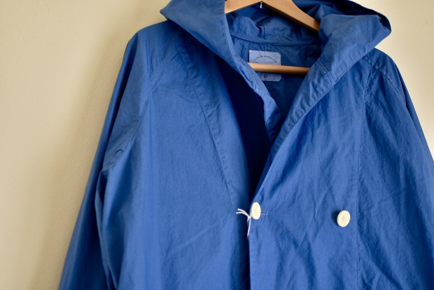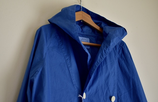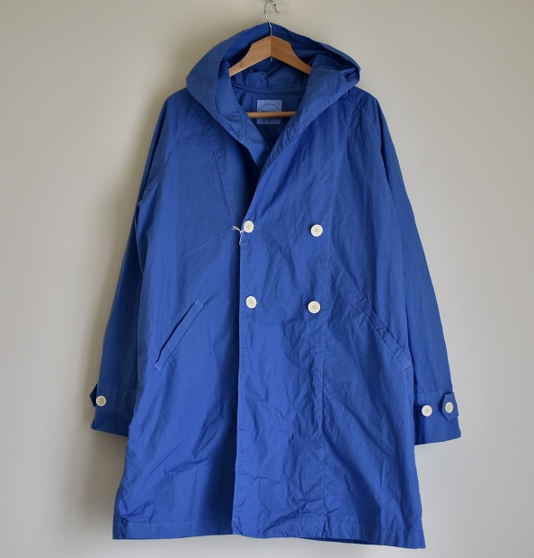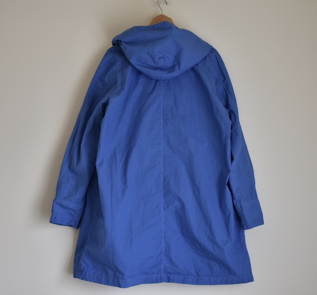 張りのあるタイプライタークロス使用したダブルフードコート。ややゆったりした作りのラグランスリーブは着心地も良くインナー選びを迷わせません。