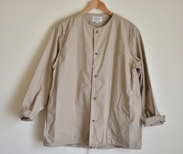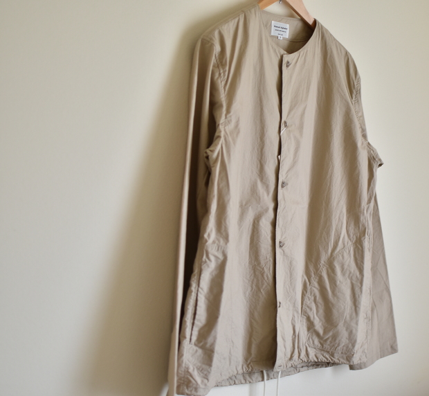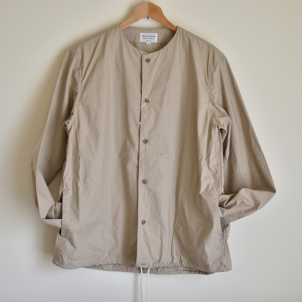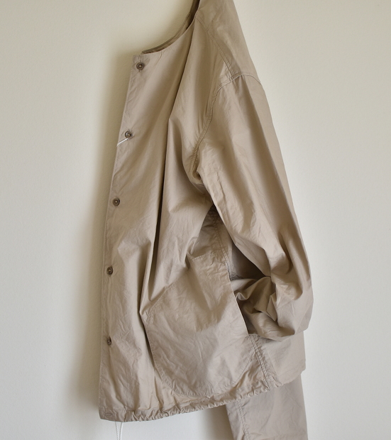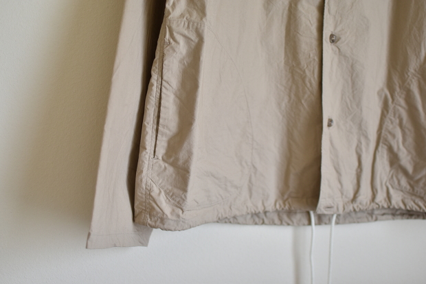 40タイプライタークロスのシャツコーチジャケット。アウターとしてもカーディガンとしてもインナーシャツとしても幅広い着方ができる万能アイテム。