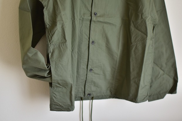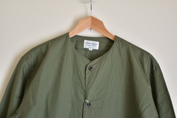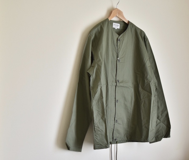 高密度ツイル素材のノーカラーコーチジャケットです。シャツ生地で軽く羽織やすくまた、インナーとしても万能なアイテムです。