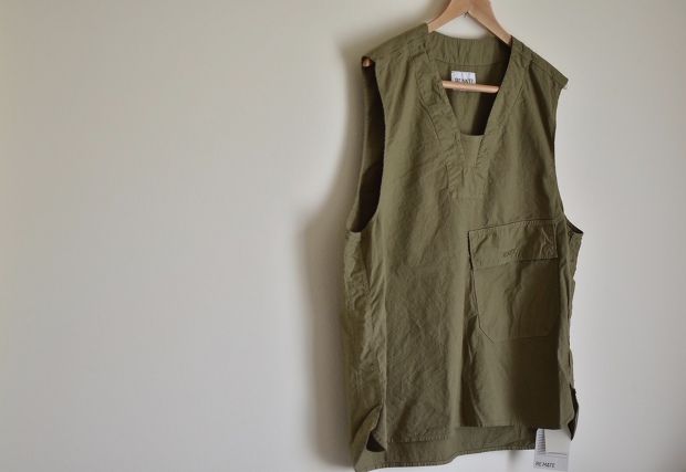 3種類の異なる素材をオーバーダイ+バイオウォッシュしたプルオーバーヴェスト。