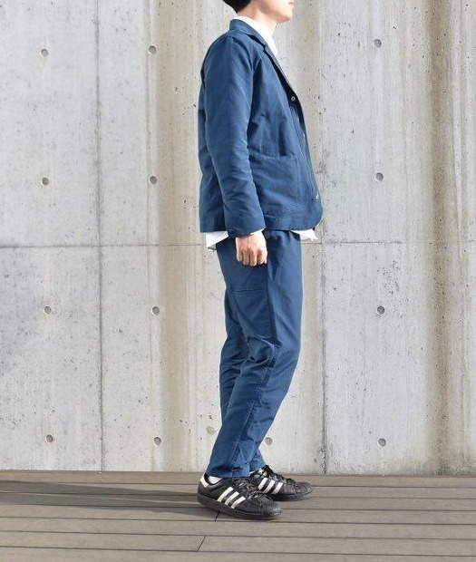60/40クロスを使っているので、汚れや摩擦にも強く、タフに着用していただけます。又、光が当たると多少の光沢感があり上品に見えるので、幅広いコーディネートを楽しんで頂けます。