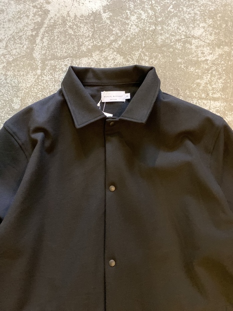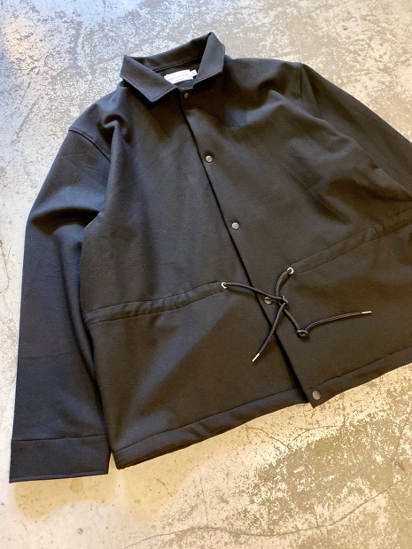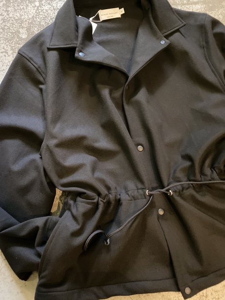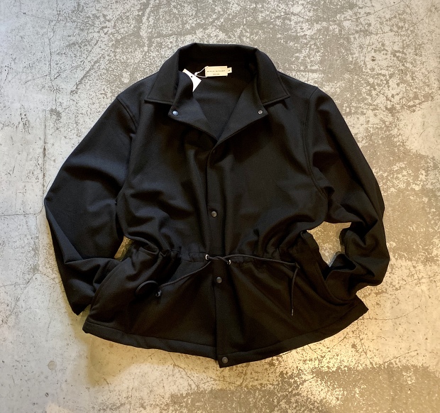 両面起毛のT/R素材を使用した落ち着きのあるコーチジャケット。 身幅・アームホールともにゆとりのあるシルエットと肌馴染みのよい素材感が特徴です。 ウエストにはスピンドルを通しているので、シルエットをアレンジすることも可能です。ボトムと合わせたSET UPスタイルもあります。