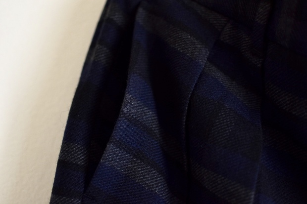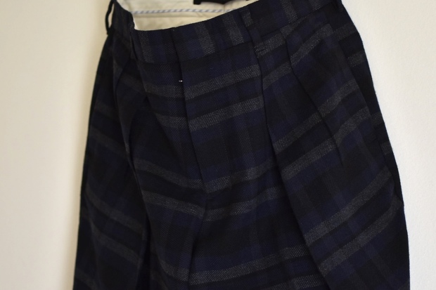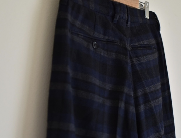 高い技術で仕立てられた変形スラックスですが、大きなチェック柄でカジュアルな普段使いにも最適。